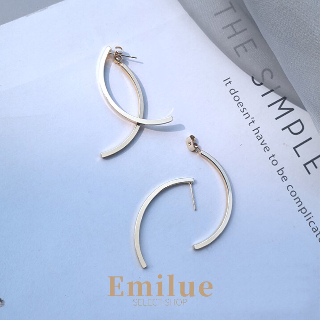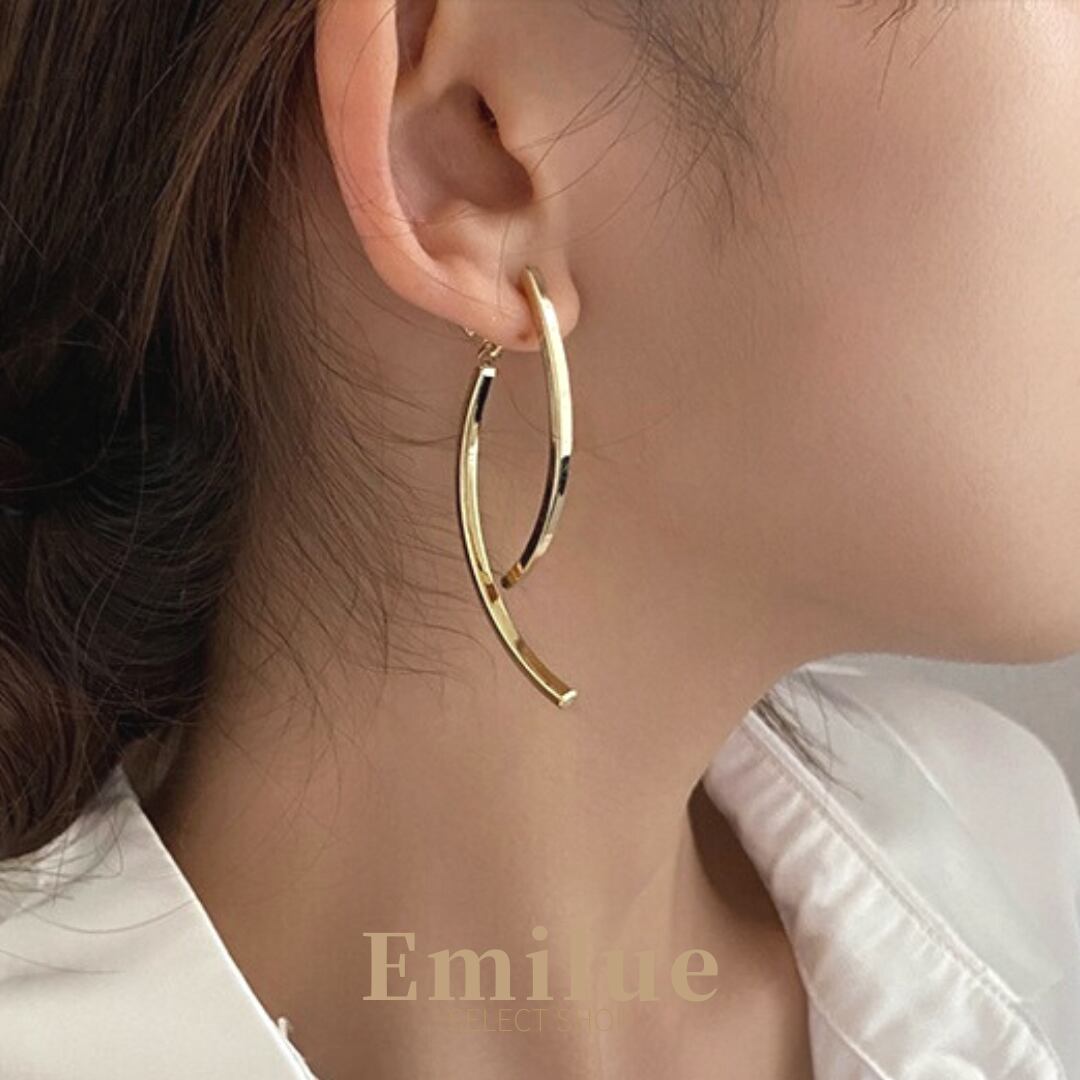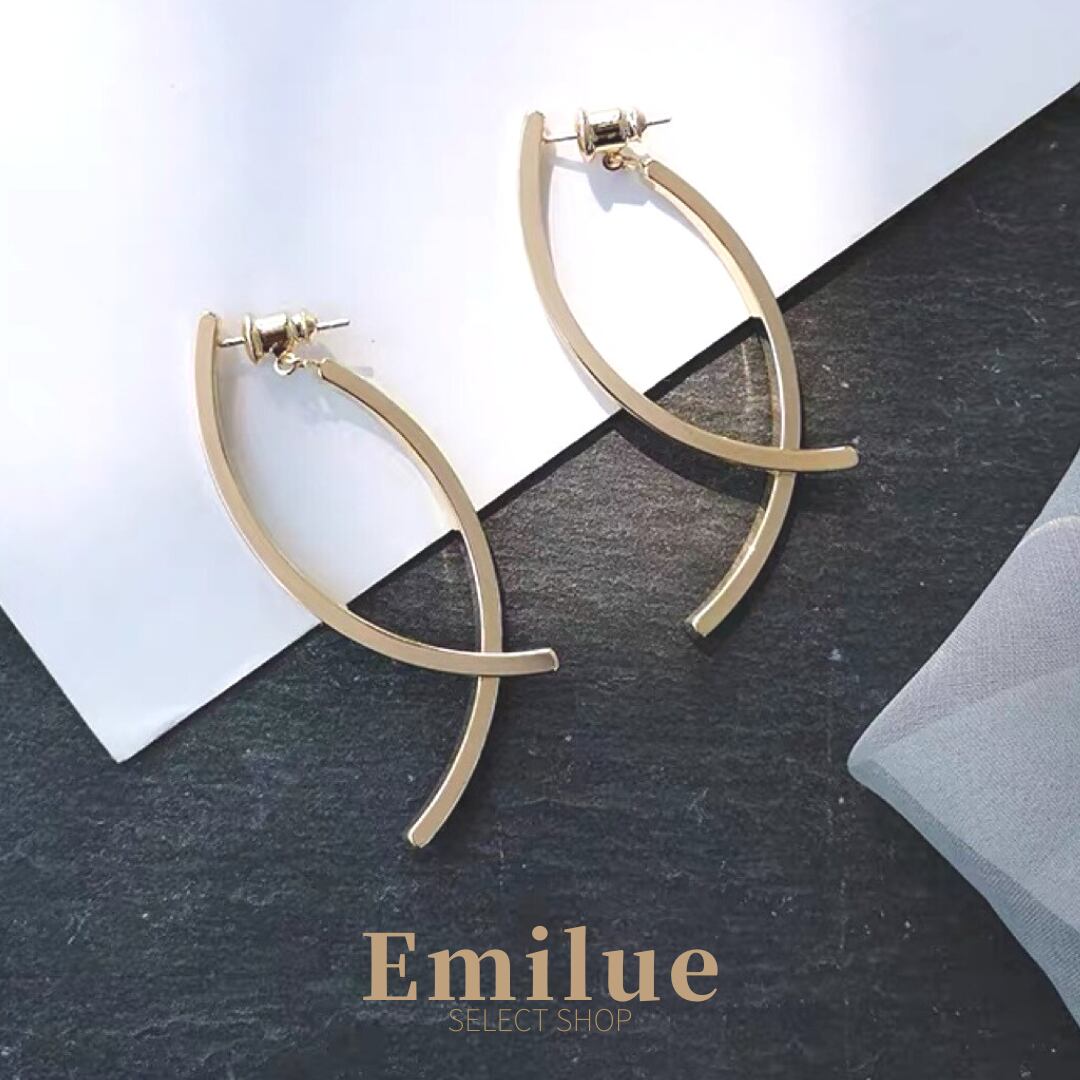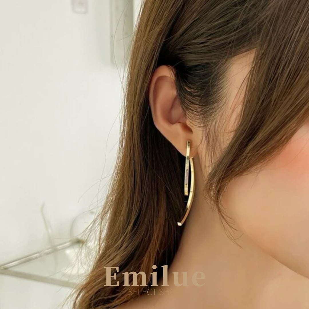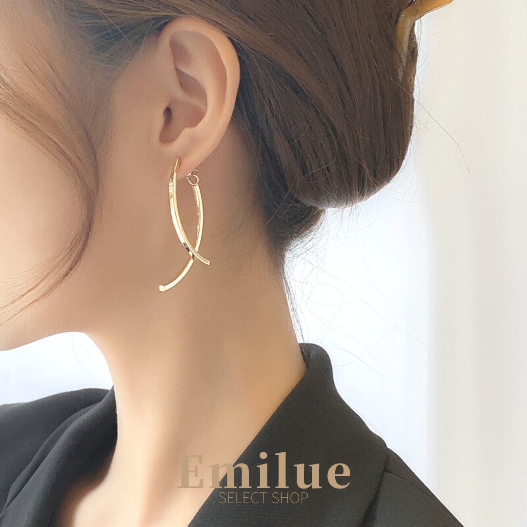 2本のスティックがカーブを描きながら交差するデザインピアス。